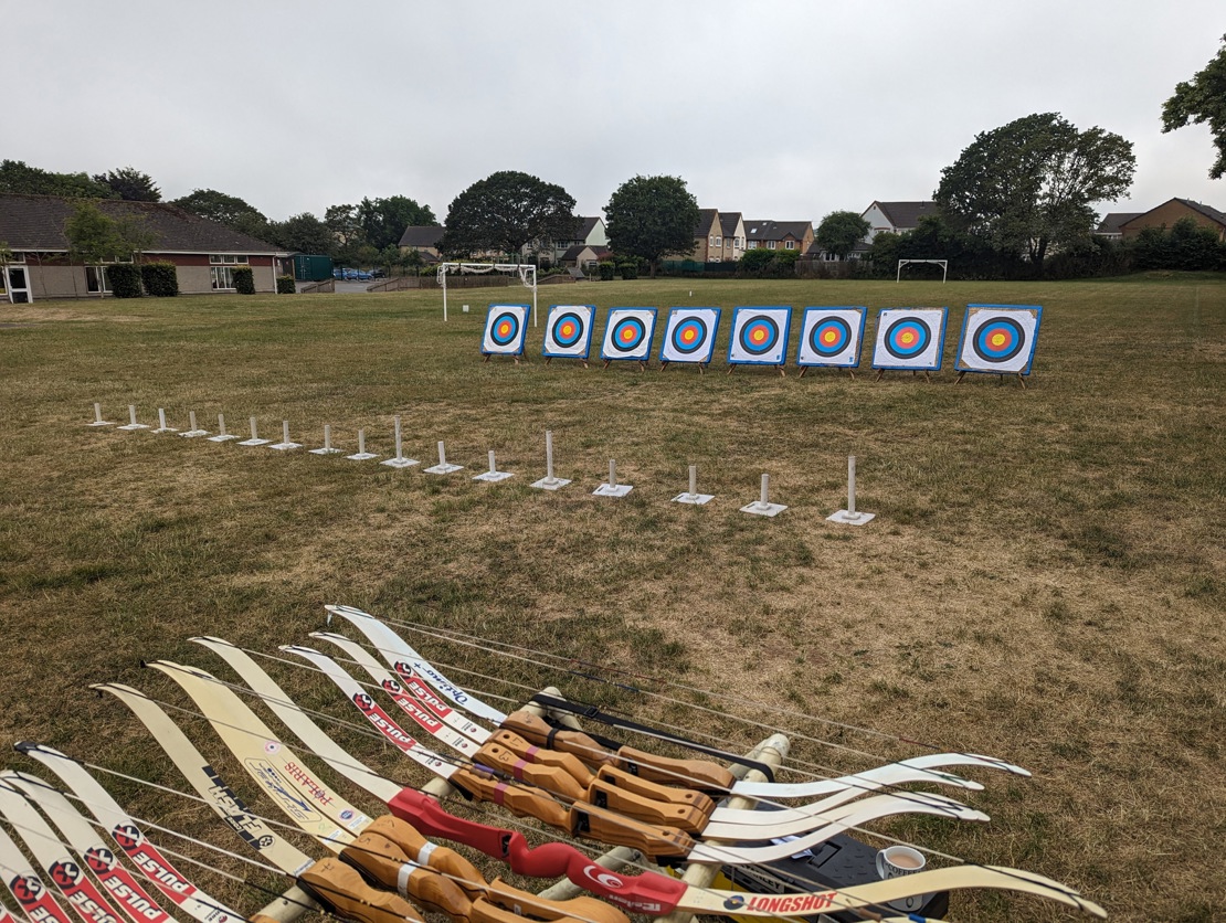 - A quick taster, lots of different groups (up to 6 ) during the day where the pupils get to shoot an Olympic style recurve or a short composite longbow style. These last about 45 minutes.